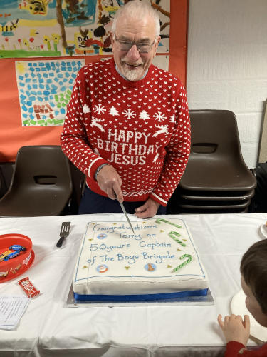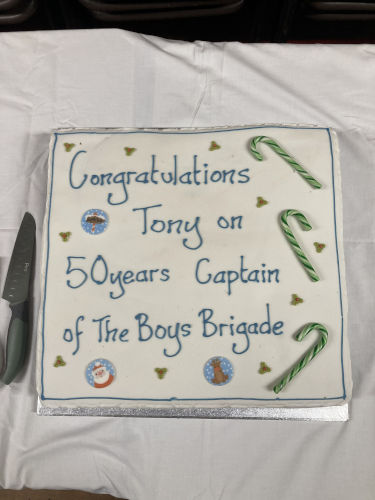 At the Boys' Brigade Nativity on Monday, there was joyful celebration of Tony's 50 years as Captain of the Brigade. |